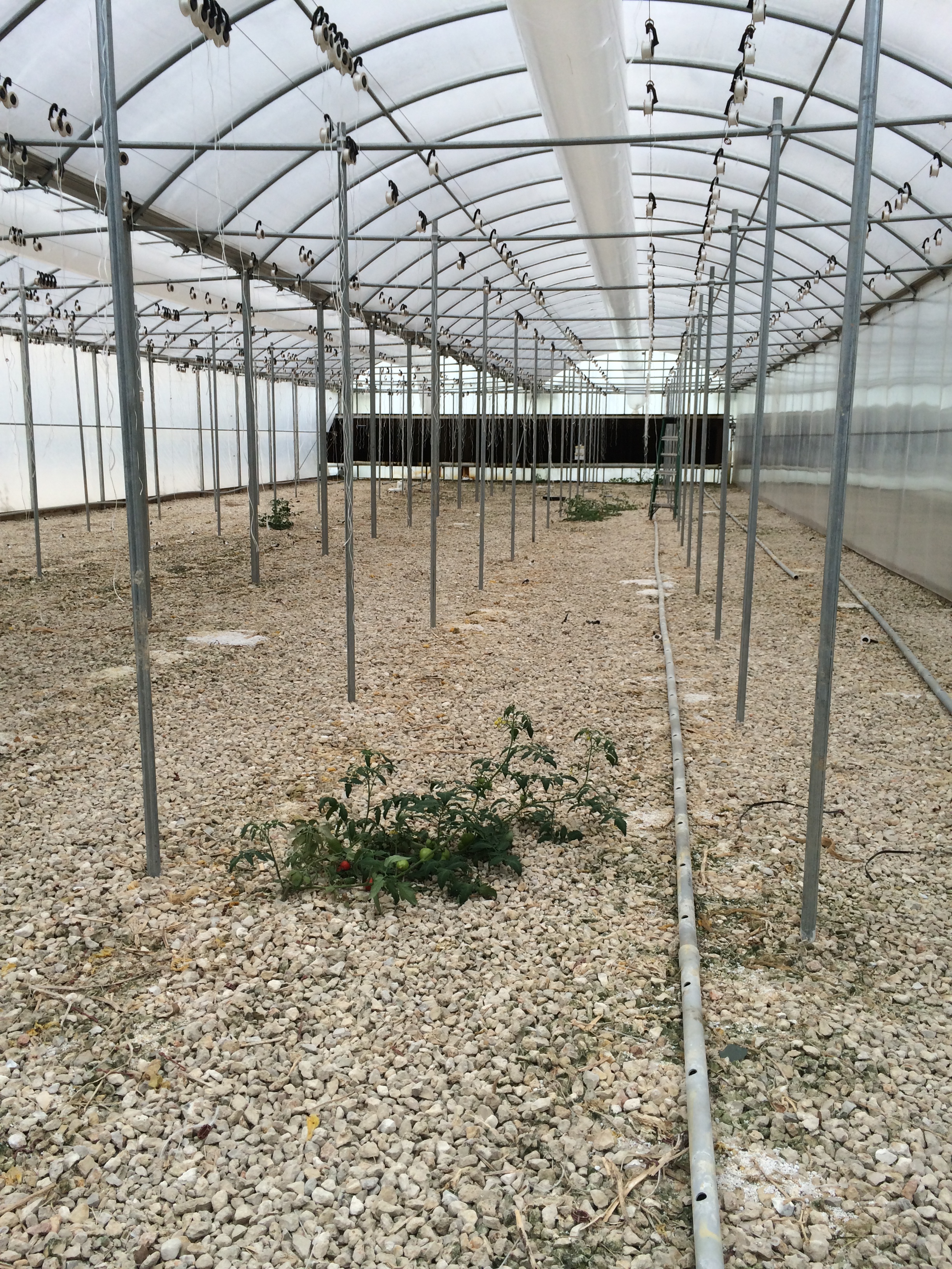 The most profitable part of the operation is usually the tomato houses. Ordinarily, this time of year two of the greenhouses would be full of Geronimo hybrid tomato plants, 1600 per greenhouse to be exact. The plants grow for nine months to a year, producing around 100,000 pounds of tomatoes in a year for the whole operation.
