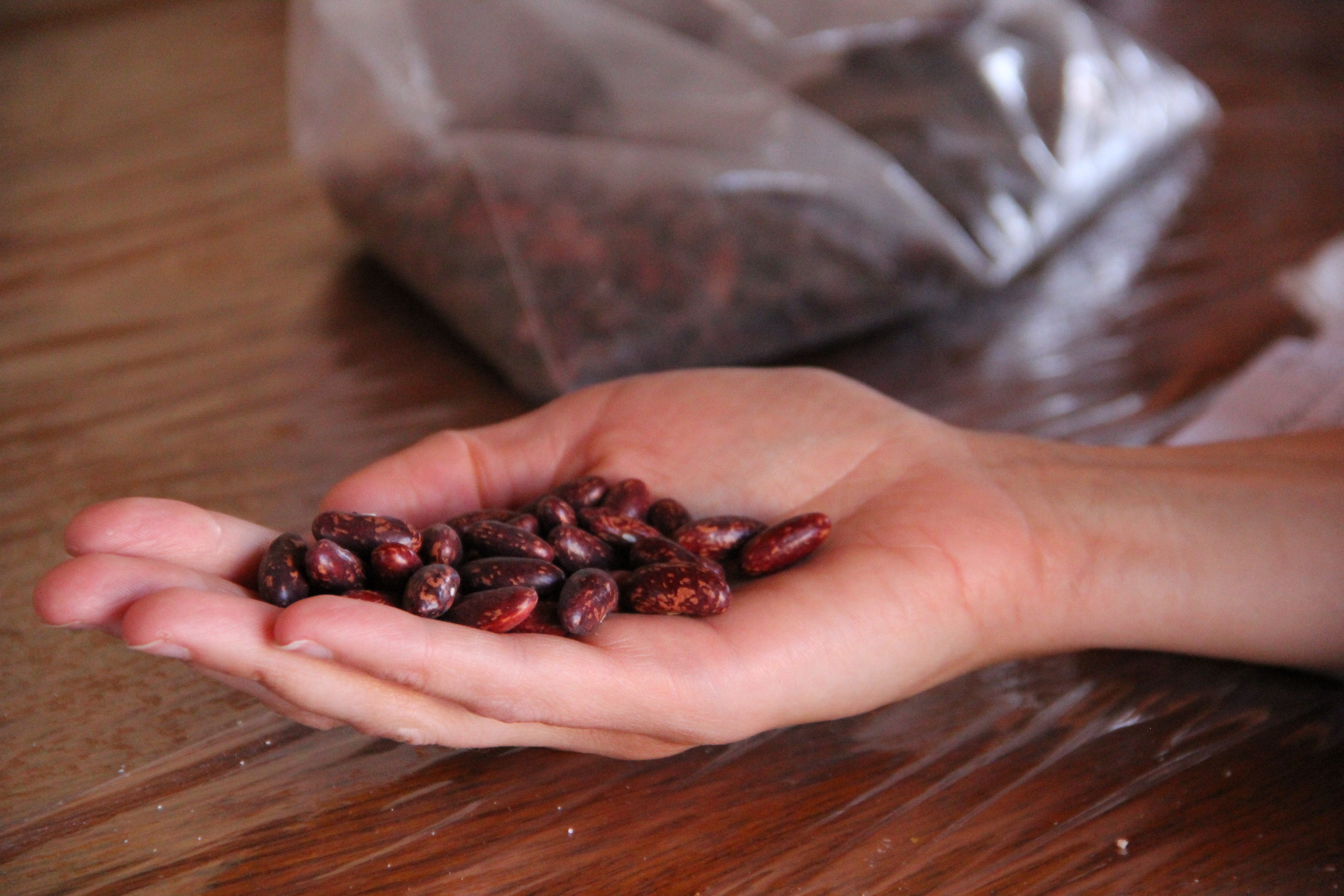 Iroquois bread beans, white corn and blue corn grown by Clayton and his family. Photo by Angelo Baca