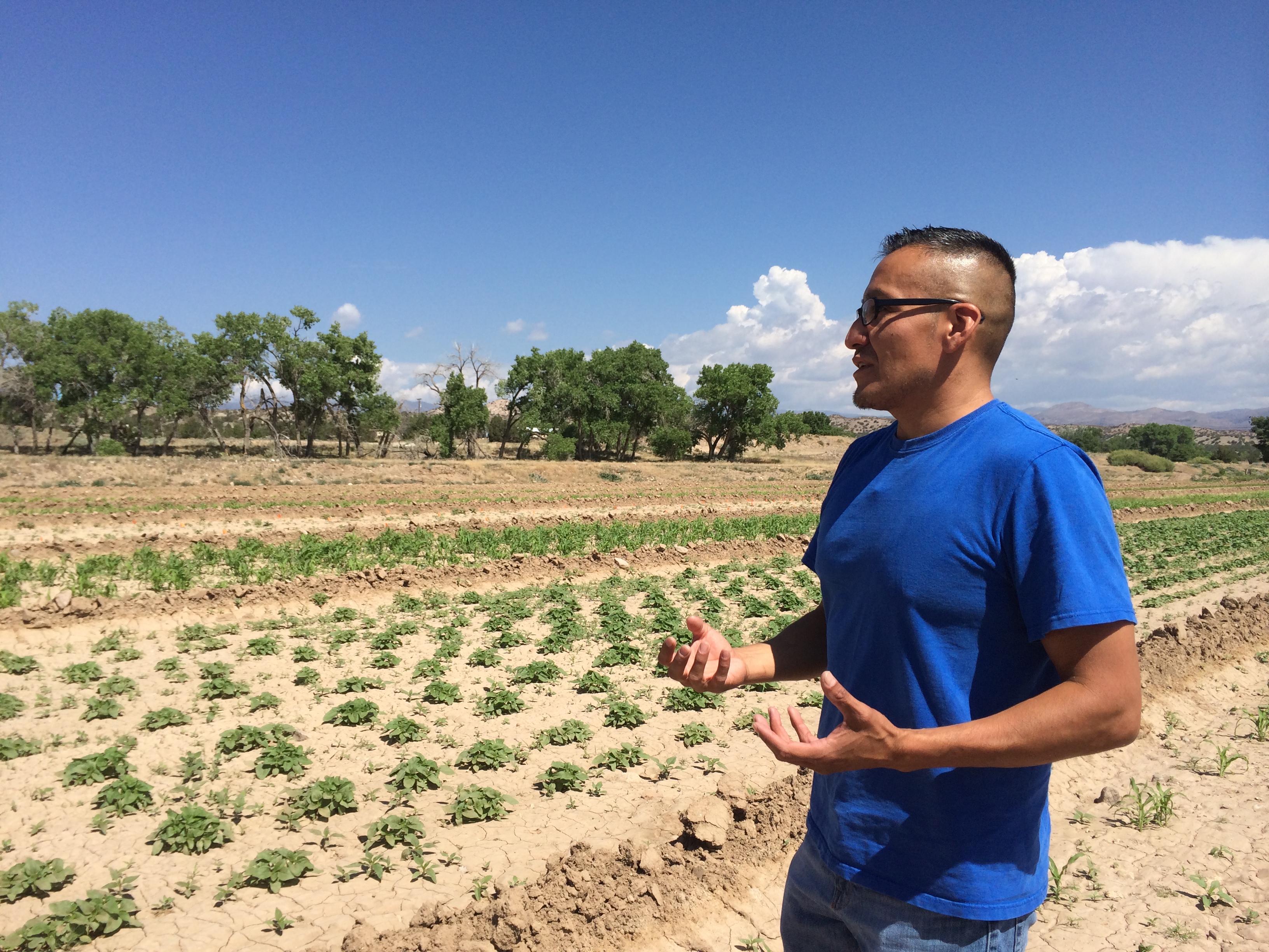 The most prevalent crop in the fields is corn. Cochiti farmers plant white corn, blue corn, red corn, and multicolored corn, from seed saved every year for what Jayson figures to be thousands of years. Each variety is planted in separate sections but Jayson did not seem to be worried them crossing (for seed saving purposes corn is usually planted at least 1000 feet in arid conditions, or up to a mile in more humid climates away from other corn varieties). Jayson’s family later showed me some of the more interesting crosses they had saved, describing with great joy some of the more unusual colors (like metallic purple) that have popped up. While some of the farms we have visited were stringent about keeping corn varieties separate and pure in order to maintain old traditional strains, this Cochiti family plants separate varieties, but is not disappointed when they cross. When we described these corns to Mohawk seed saver and seed school instructor Rowen White, she explained that this is how many Native communities previously treated seed, allowing it to remain genetically robust through crossing with other indigenous corns. In an upcoming post we will further discuss seed saving and traditional crop breeding among the communities and projects we’ve been to visit.