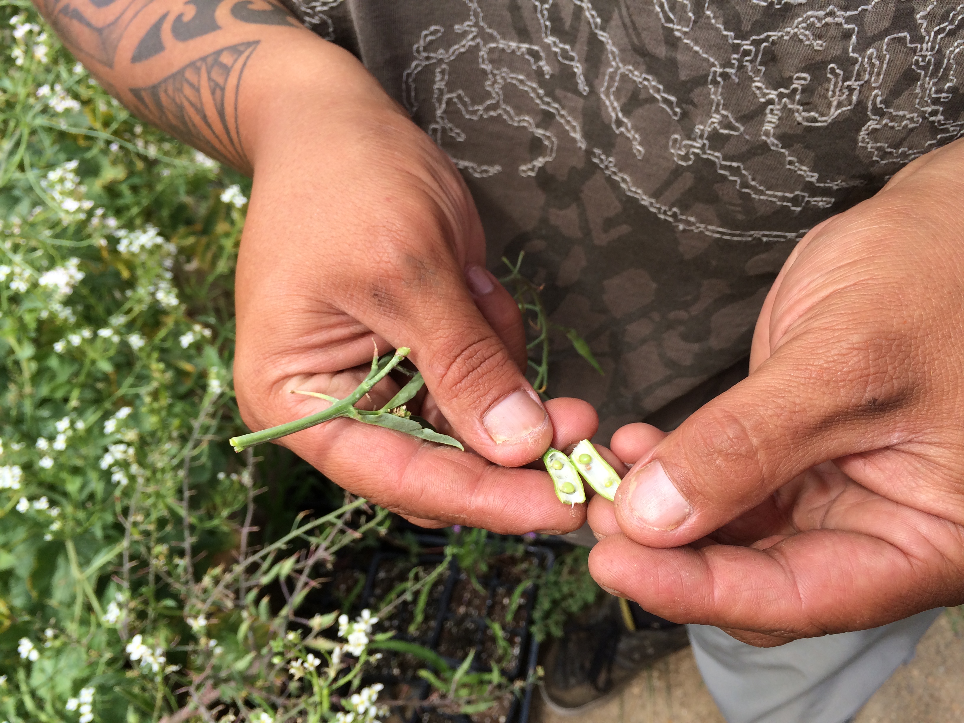 In 1856 AW Von Schmitt came to CA to survey the Valley and noticed the Native irrigation systems. Recently, with the help of a student from UC Berkeley the tribe rediscovered his drawings and mapped them over the current reservation (borders indicated by red lines) to see where these ditches once were. According to Alan Bacock, Water Program Coordinator for the Big Pine Paiute, the site chosen for the permaculture demonstration project (brown square above) “was the exact place that our people had created food for themselves for thousands of years prior. It gives me goosebumps to know that this place that we’re working on is a place that our people have been working on, and it sort of creates that circle again. We are reconnecting, not just with seeing food as being an important element for our people to be able to develop, but seeing that our people had used that same location to do that same exact thing. So that was pretty cool.” Slide by Alan Bacock