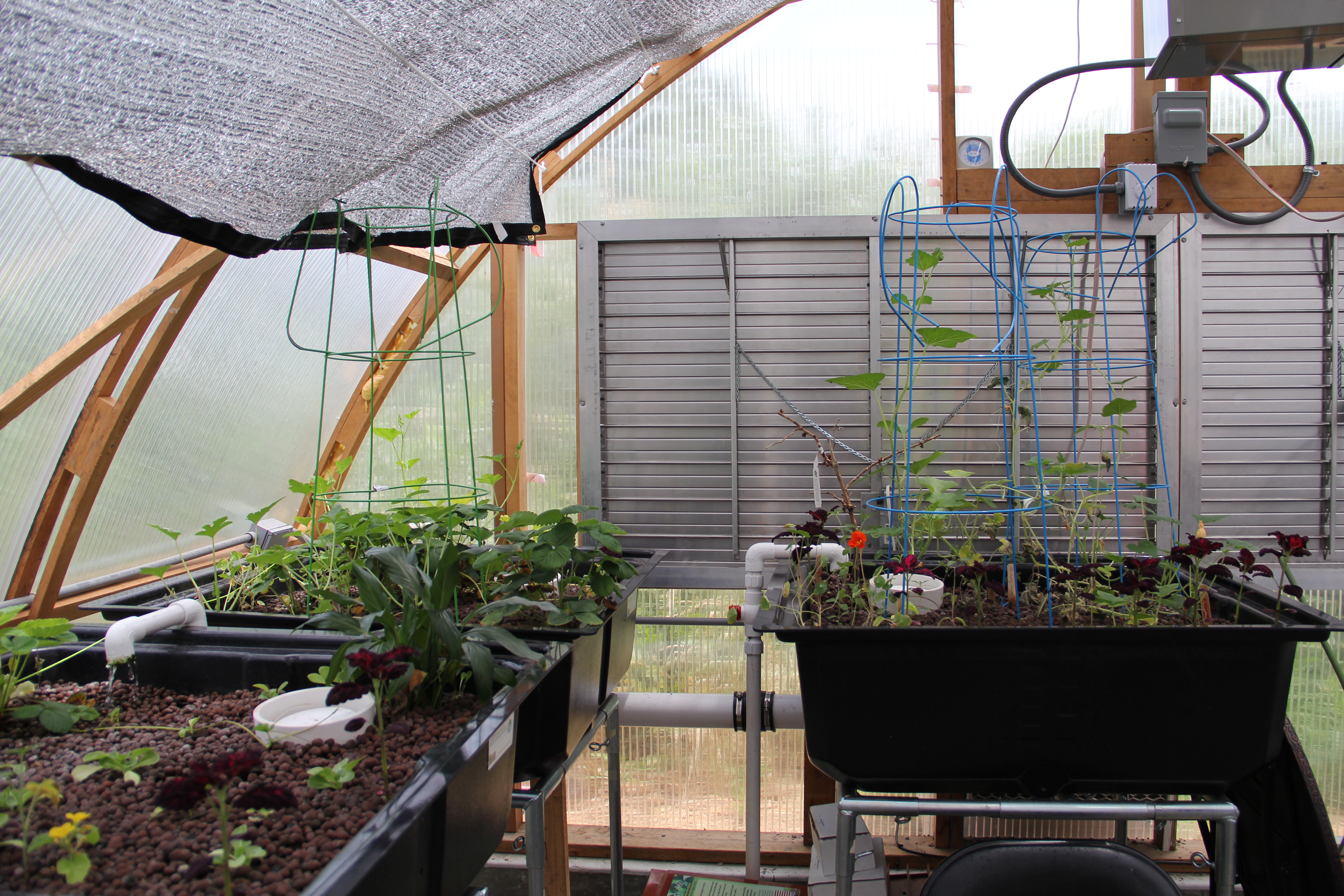 Heat shields (upper left) keep the greenhouse from getting too hot in the summer. Photo by Angelo Baca