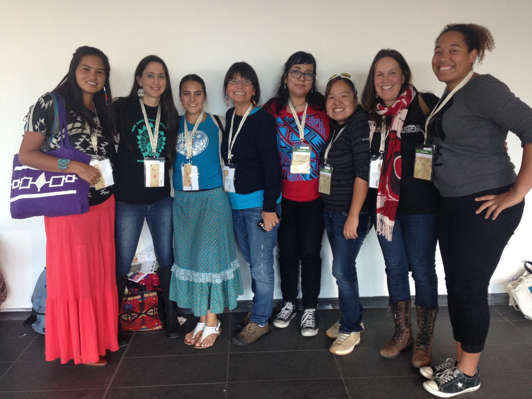Kaylena Bray, Elizabeth Hoover, Nicole Yanes, Pauline Terbasket, Jamie Holding Eagle, Collette Louie, Lori Snyder, Lauren Mapp. All at Terra Madre to discuss indigenous food issues