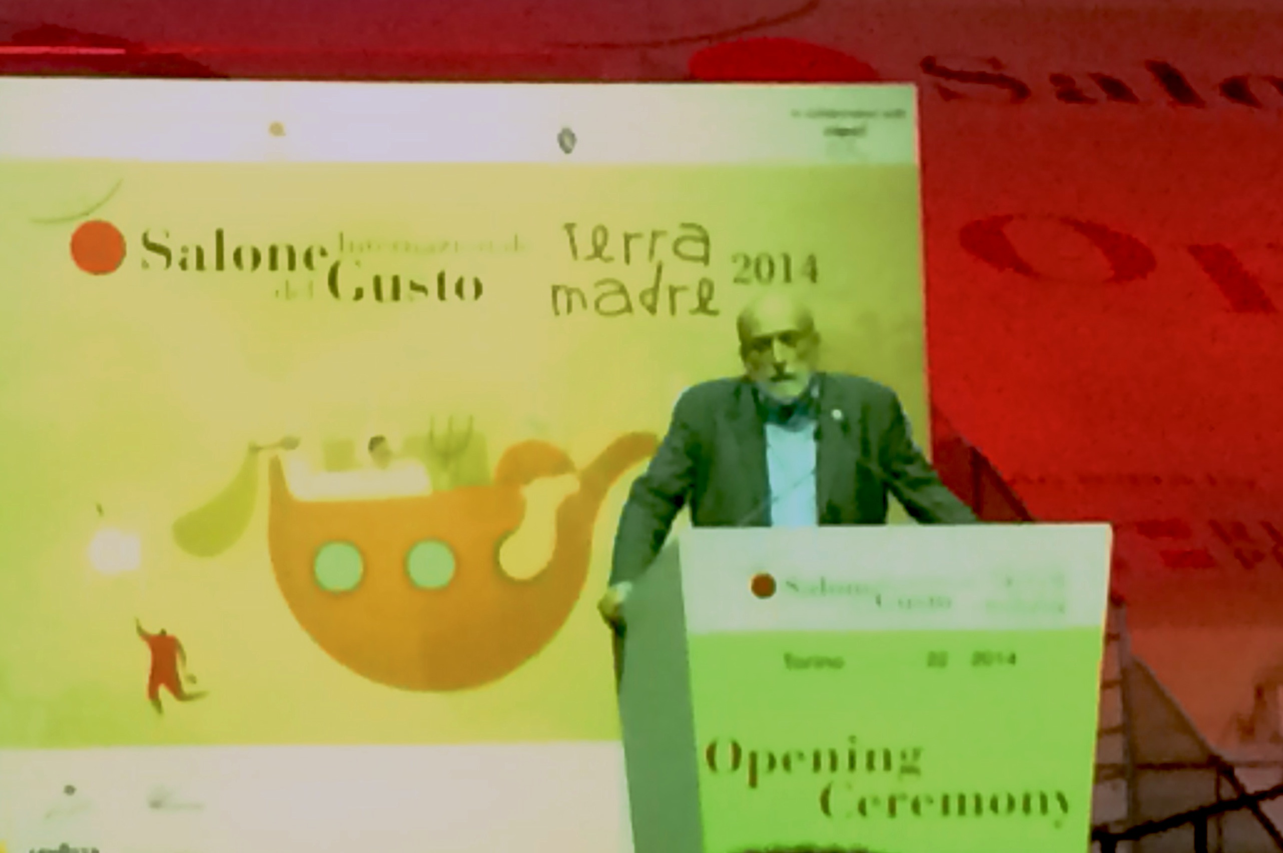The opening ceremony also featured a representative from South Africa speaking about how laws to protect marine species have criminalized small fisher operations; Anna Grossmanova from the Czech Republic describing a youth focused community based kitchen and sensory lab; Roba from the Karrayu Tribe in Ethiopia who described the difficulties of herding when multinationals take the land for sugar cane production; Ivo Kara from Pesic Croatia who described focusing the local economy on Ark of Taste varieties to avoid having food culture become homogenized since joining the EU; Alice Waters from the US who described the importance of “edible education”; Joei Asari from Oita Japan whose family produces Koji (starter foods for miso paste, saki, soysauce), a food he claims strengthens the immune system and detoxifies the body. He hopes it will help residents of Fukishima in recovering from the nuclear exposure. Selvi Naji from India spoke about the indigenous terra madre network and the Alu Karumba del Tamili Nadu people in India who are working on a survey of their traditional and sacred foods, and Edward Mukiibi from Uganda described the Slow Food Project which aims to help install 10,000 gardens in Africa.