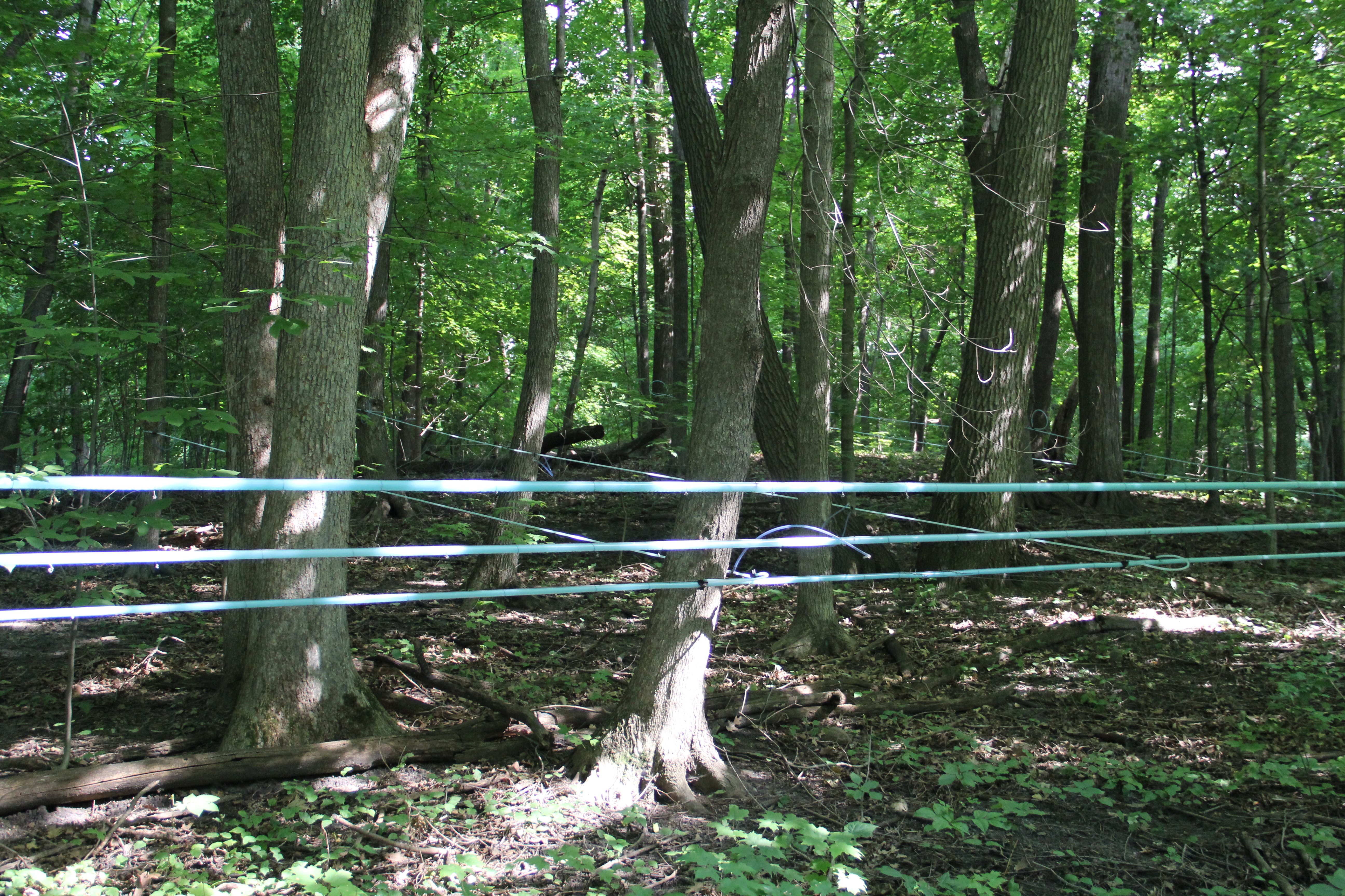 Lines to maple trees that will be attached to a vacuum pump in the spring when the trees are tapped. Photo by Angelo Baca