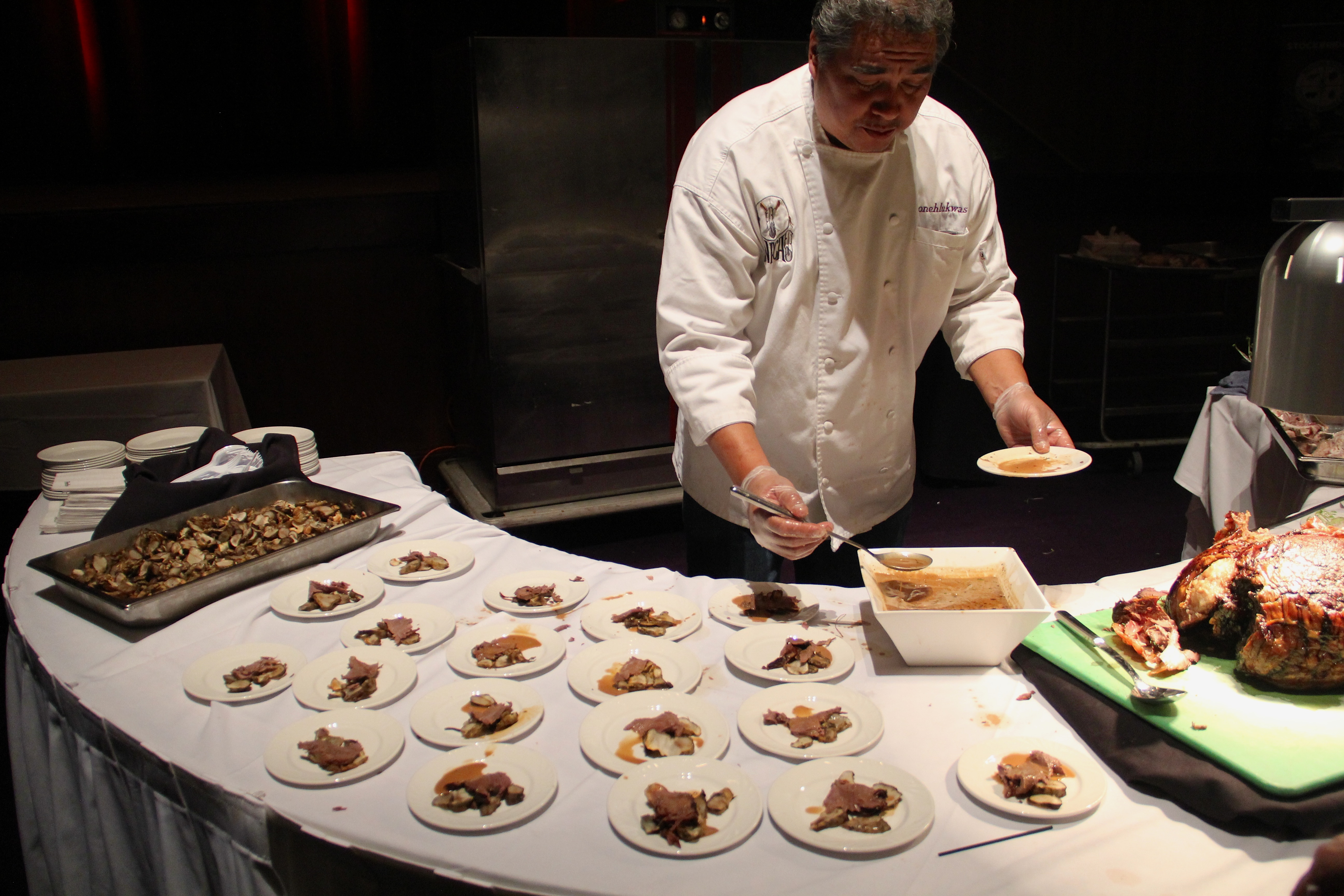 ‘Arlie,gravy’ Published February 19, 2016 at 5184 × 3456 in Great Lakes Food Sovereignty Summit, Oneida WI Chef Arlie adding gravy to roasted buffalo meat and jerusalem artichokes (photo by Elizabeth Hoover) Leave a comment Cancel reply Δ