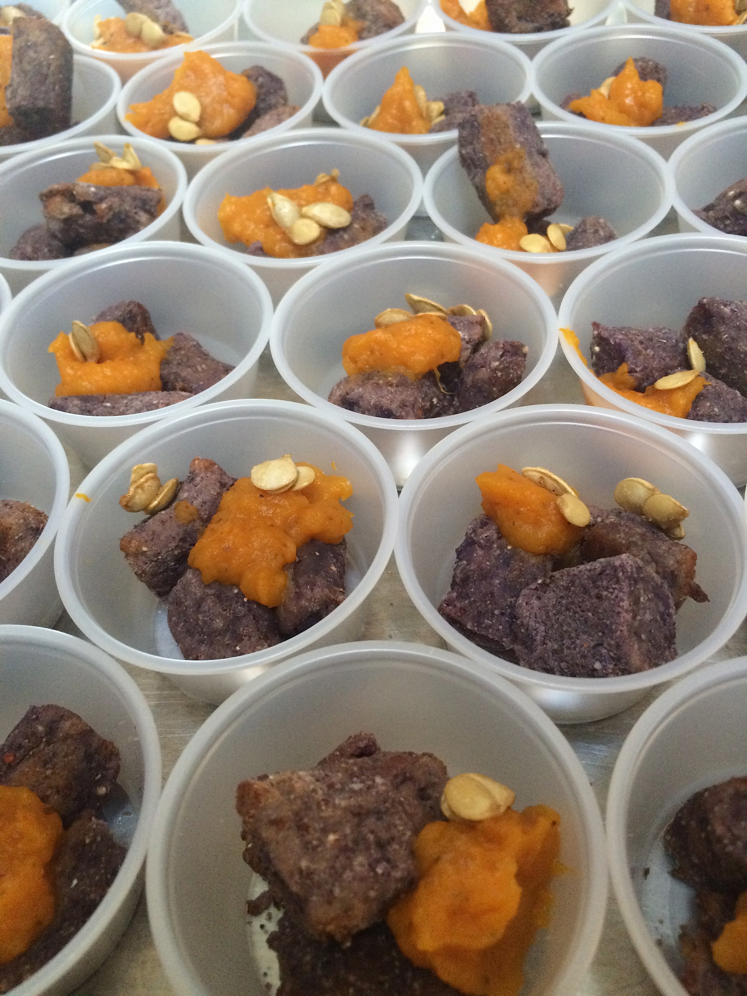 Andrea’s purple potato gnocchi made with quinoa flour, maple sumac squash puree, and maple candied squash seeds. Andrea’s cuisine represents her Incan roots from her ancestral Venezuala, as well as the Polish roots of her adopted family, and the produce of her home in Wisconsin. (Photo by Elizabeth Hoover)