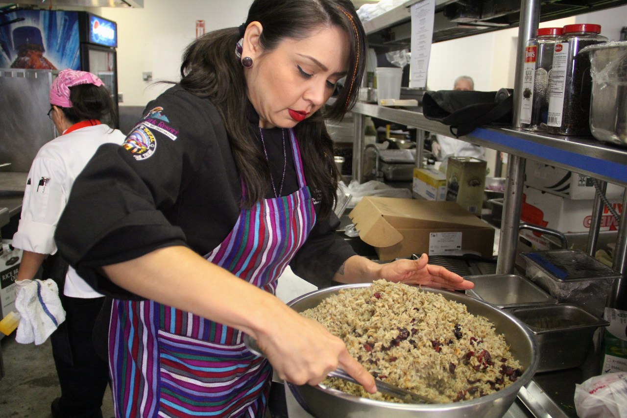 Claudia Serrato is a Purepucha chef from California, who is also currently working on a Phd in Anthropology through the University of Washington. You check our her “Decolonial Food For Thought Blog” and her Tumbler. Here, Claudia was kind enough to help me with my demonstration sample of wild rice. (Photo by Elizabeth Hoover)