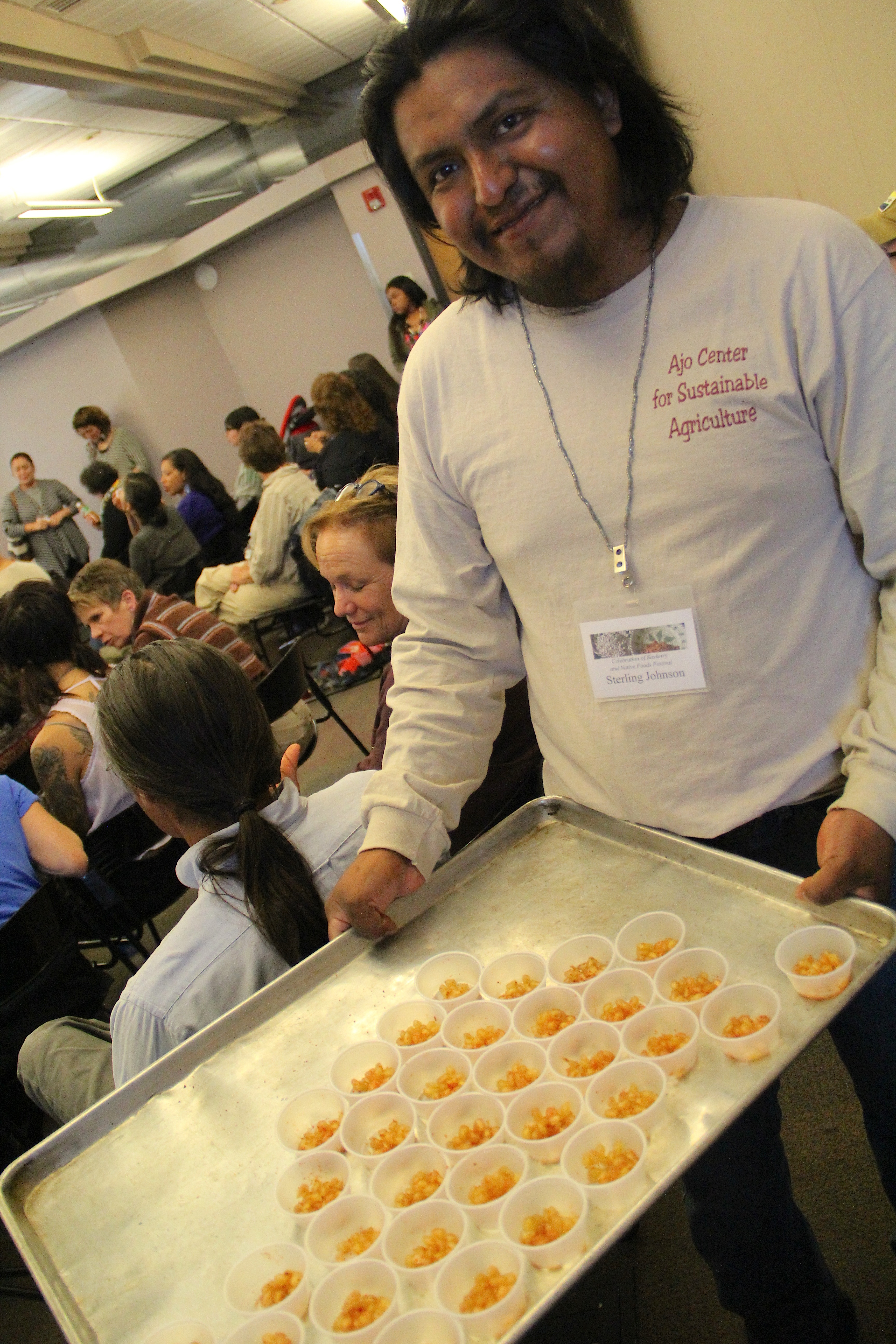 Sterling Johnson (Tohono O’odham) from the Ajo Center for Sustainable Agriculture, collaborated with Nina Sajovec to present about heirloom pomegranate varieties (photo by Elizabeth Hoover)