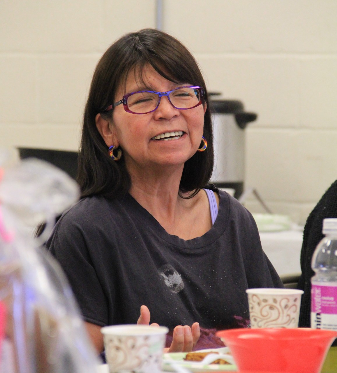 Pauline Terbasket from the Okanagan Nation Alliance, emphasized that Indigenous people need to have more agency in the preservation of indigenous foods. She mentioned organizations in Canada who have budget line items for Indigenous food sovereignty work, but she doesn’t see real action from them. “We are the power, we are the change, we are the ones who are responsible for taking care of our own foods.” She has been “reinvigorated and recharged” by interacting with people internationally through Slow Food gatherings who are going through similar struggles. Photo by Elizabeth Hoover