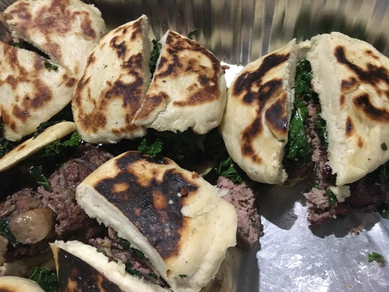 The hands-down best burger I’ve ever had– smoked buffalo burgers with mushrooms and kale, and hand made buns. Hasty photo by Elizabeth Hoover (before stuffing them into my mouth)