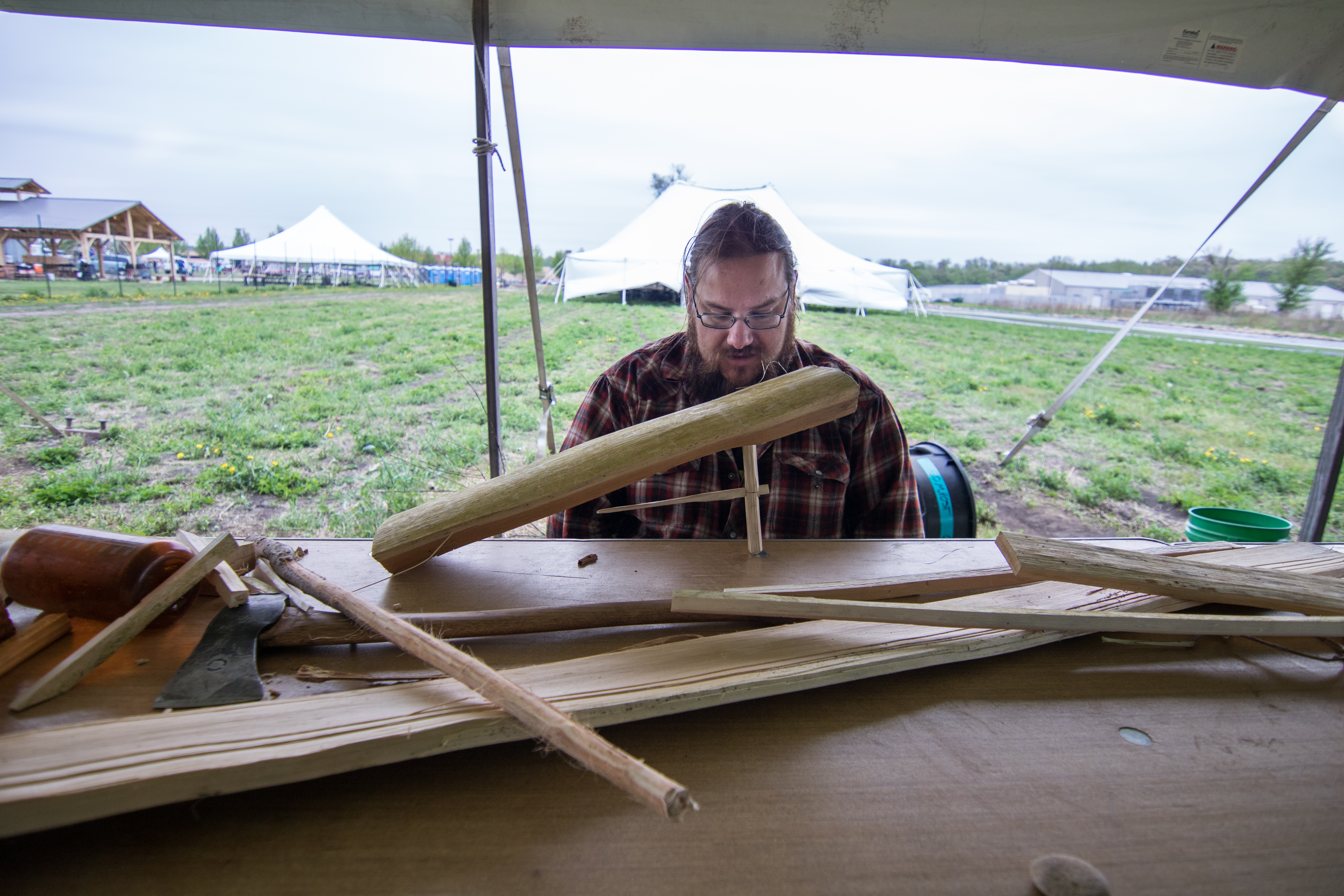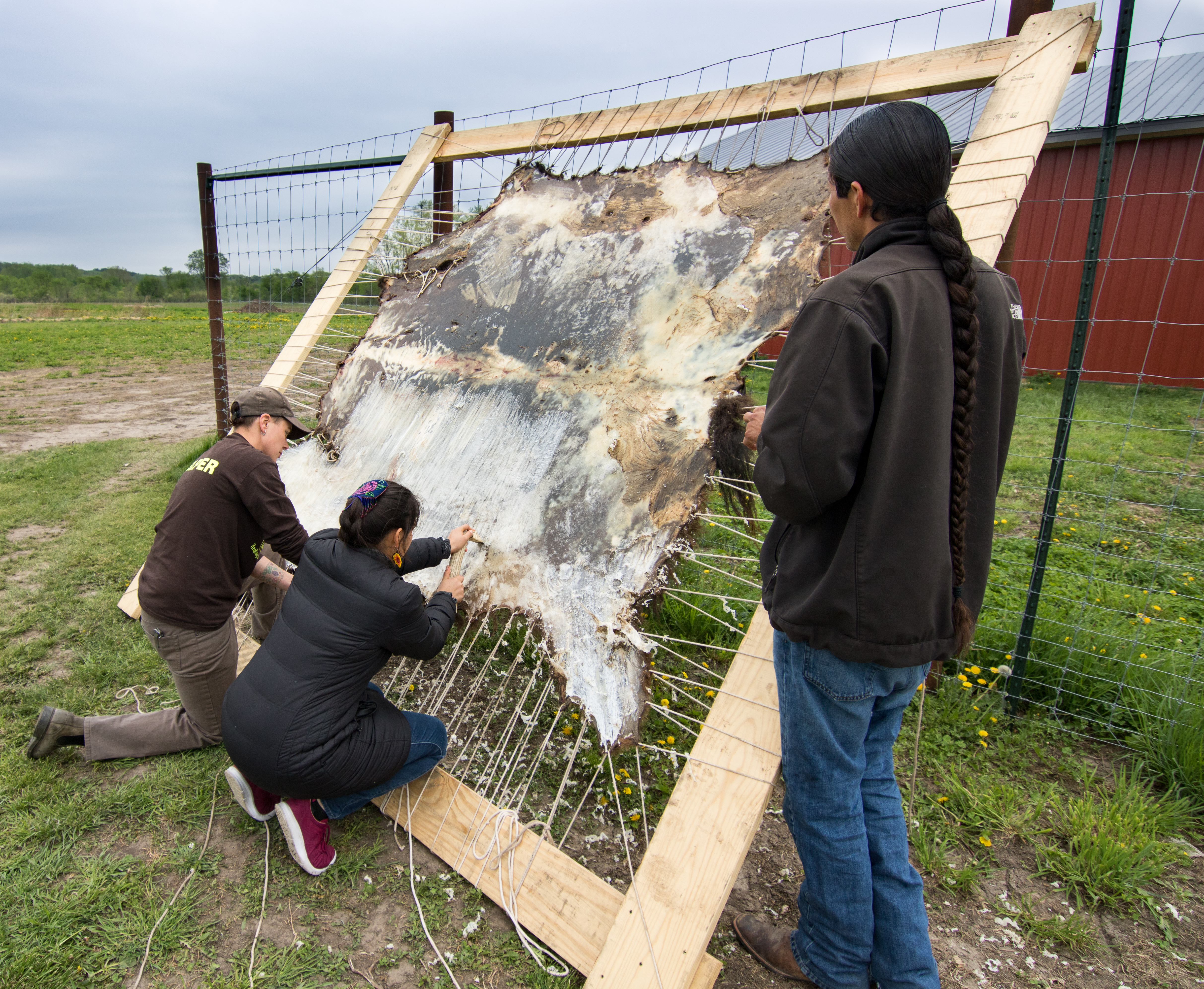 scraping the buffalo hide. Photo by Elizabeth Hoover