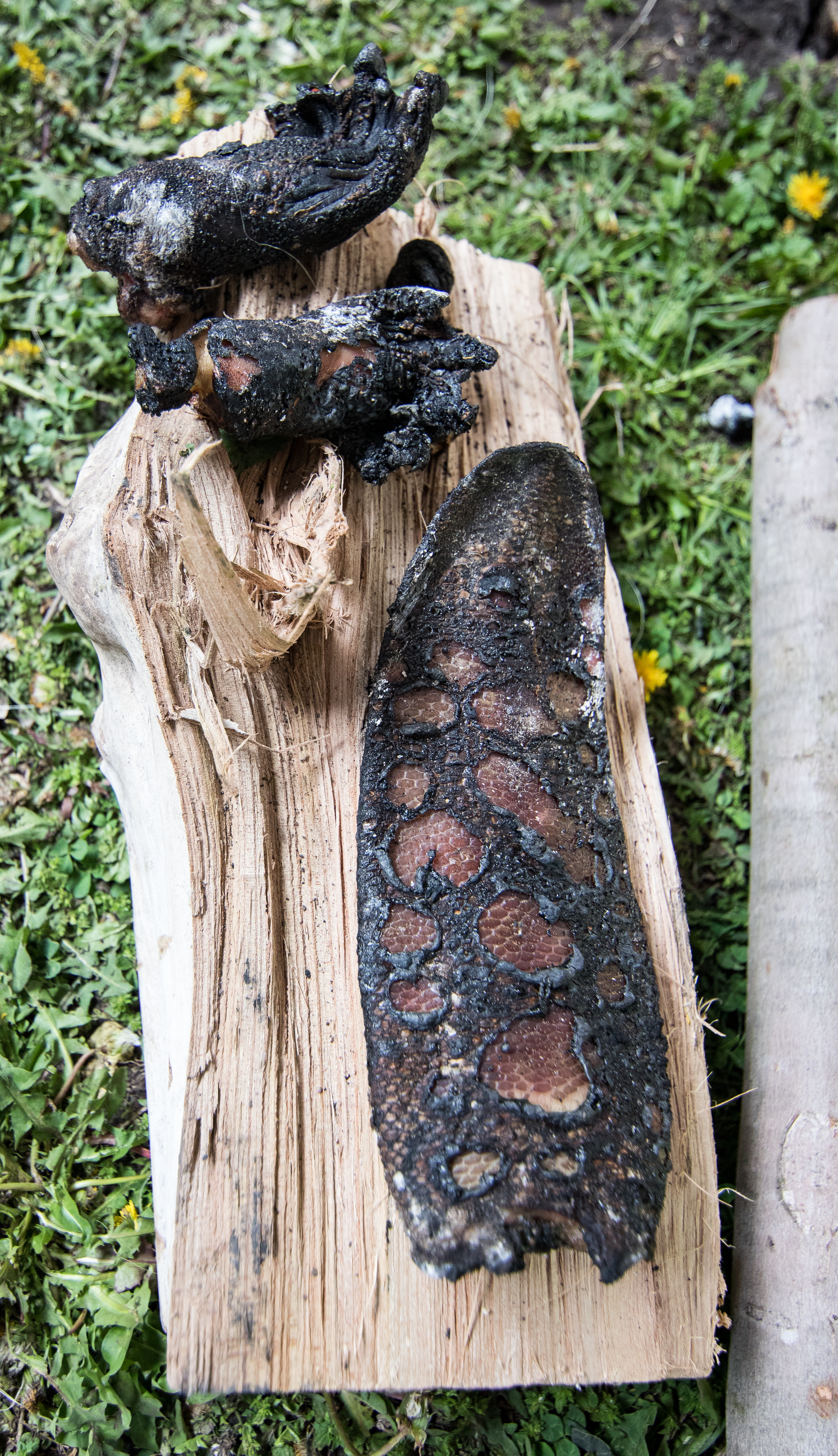 beaver feet and tail roasted over the fire. Photo by Elizabeth Hoover
