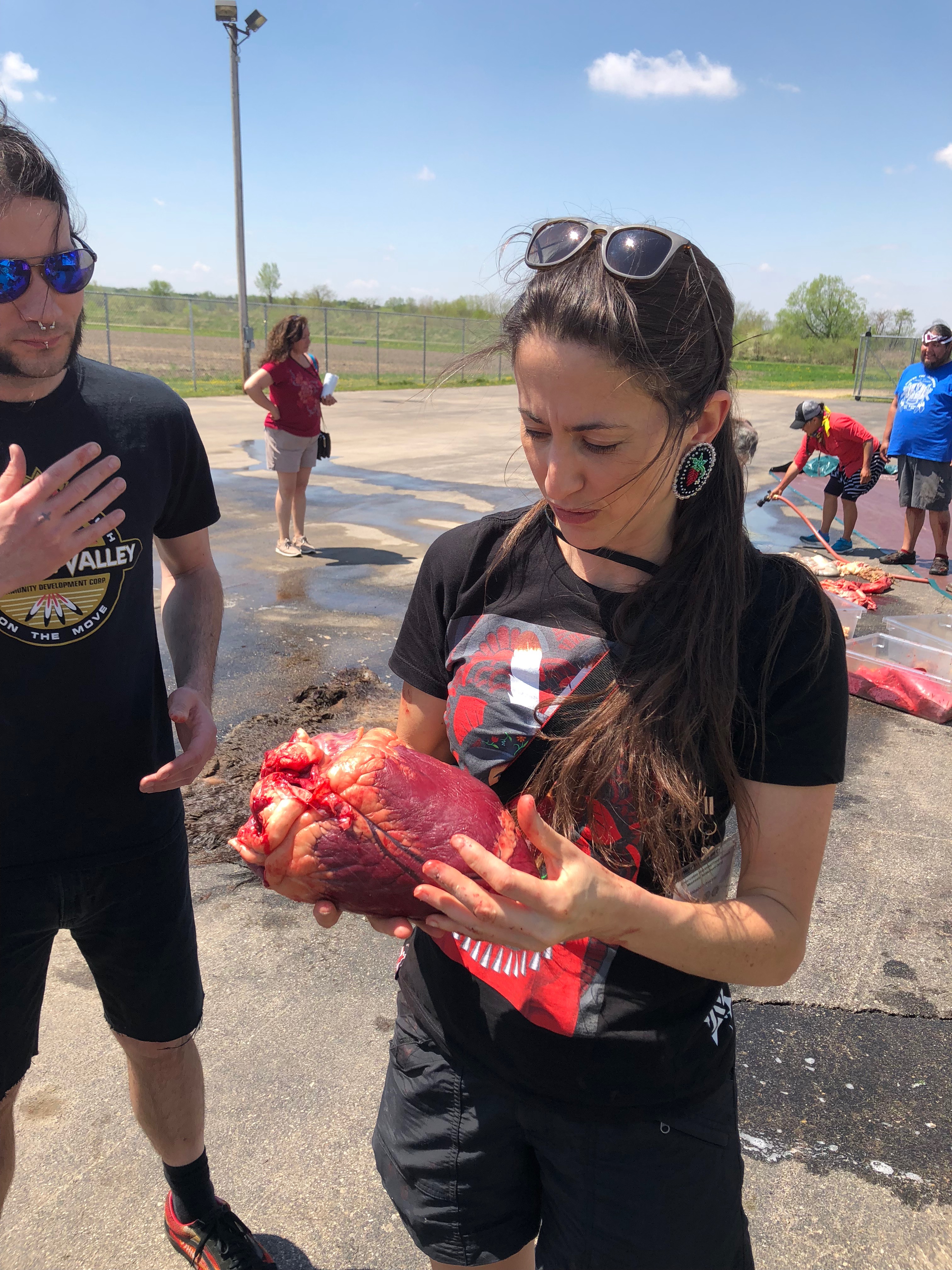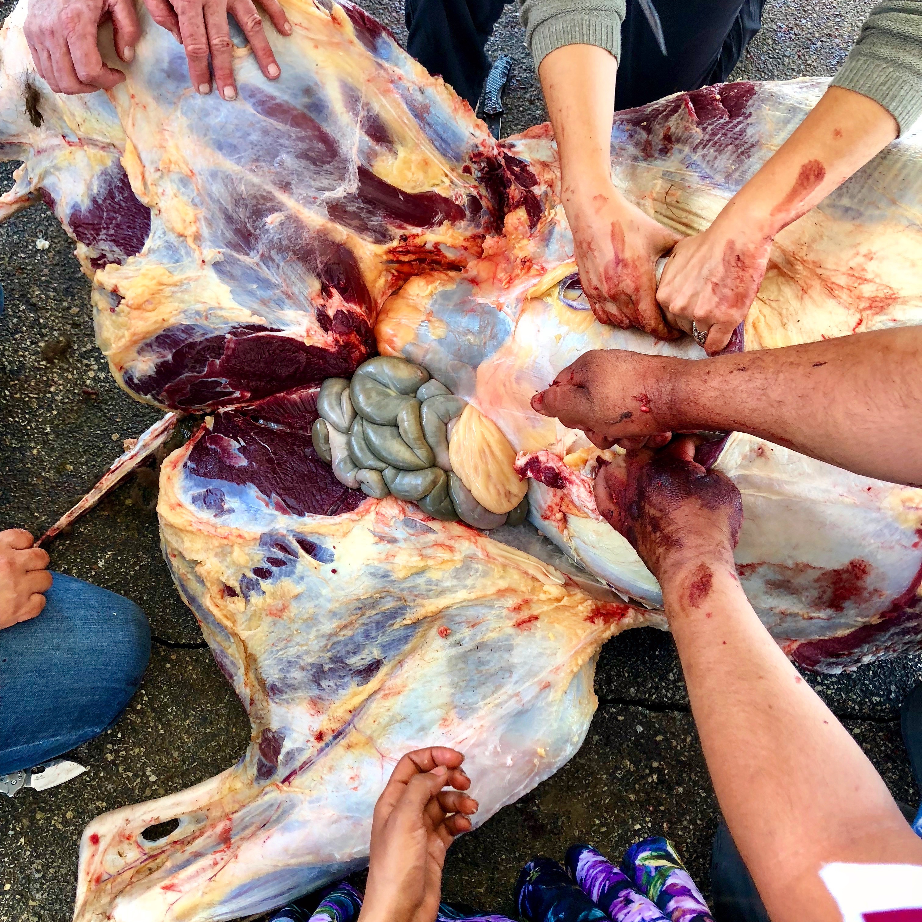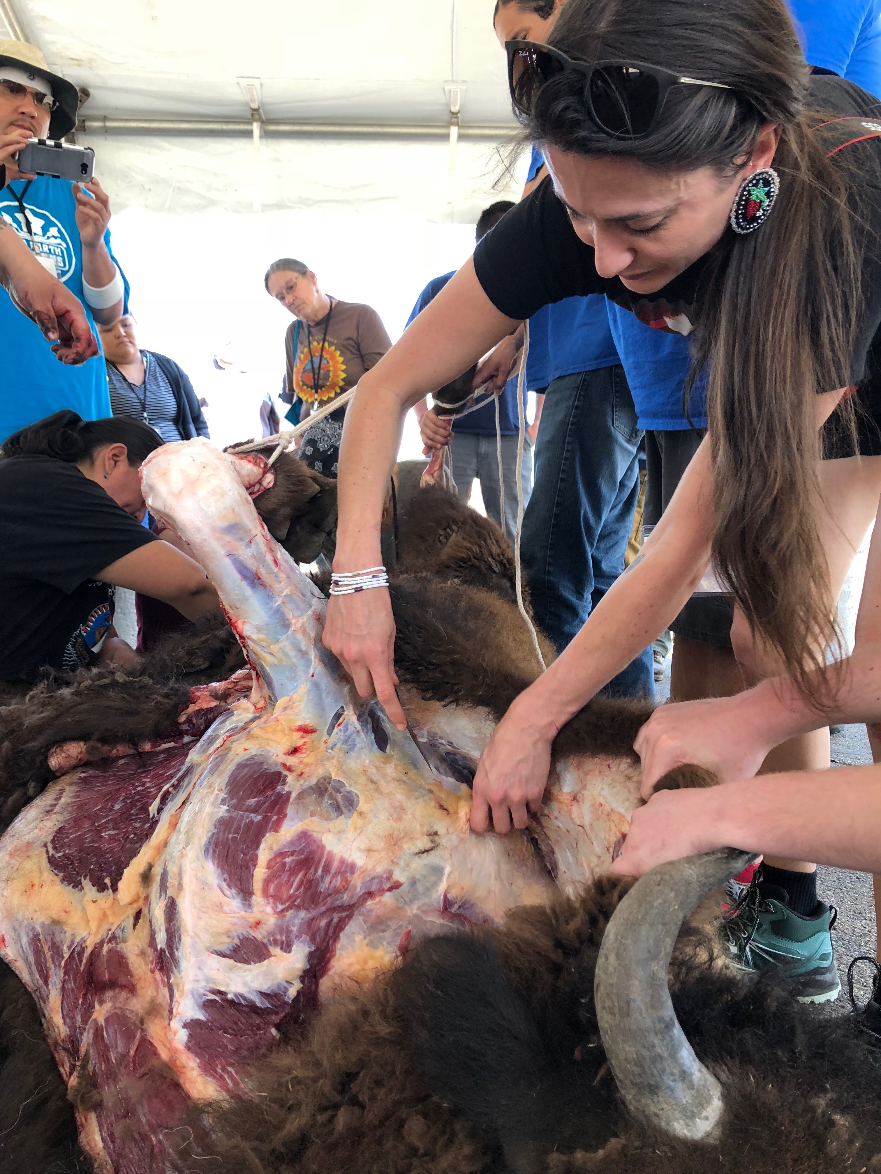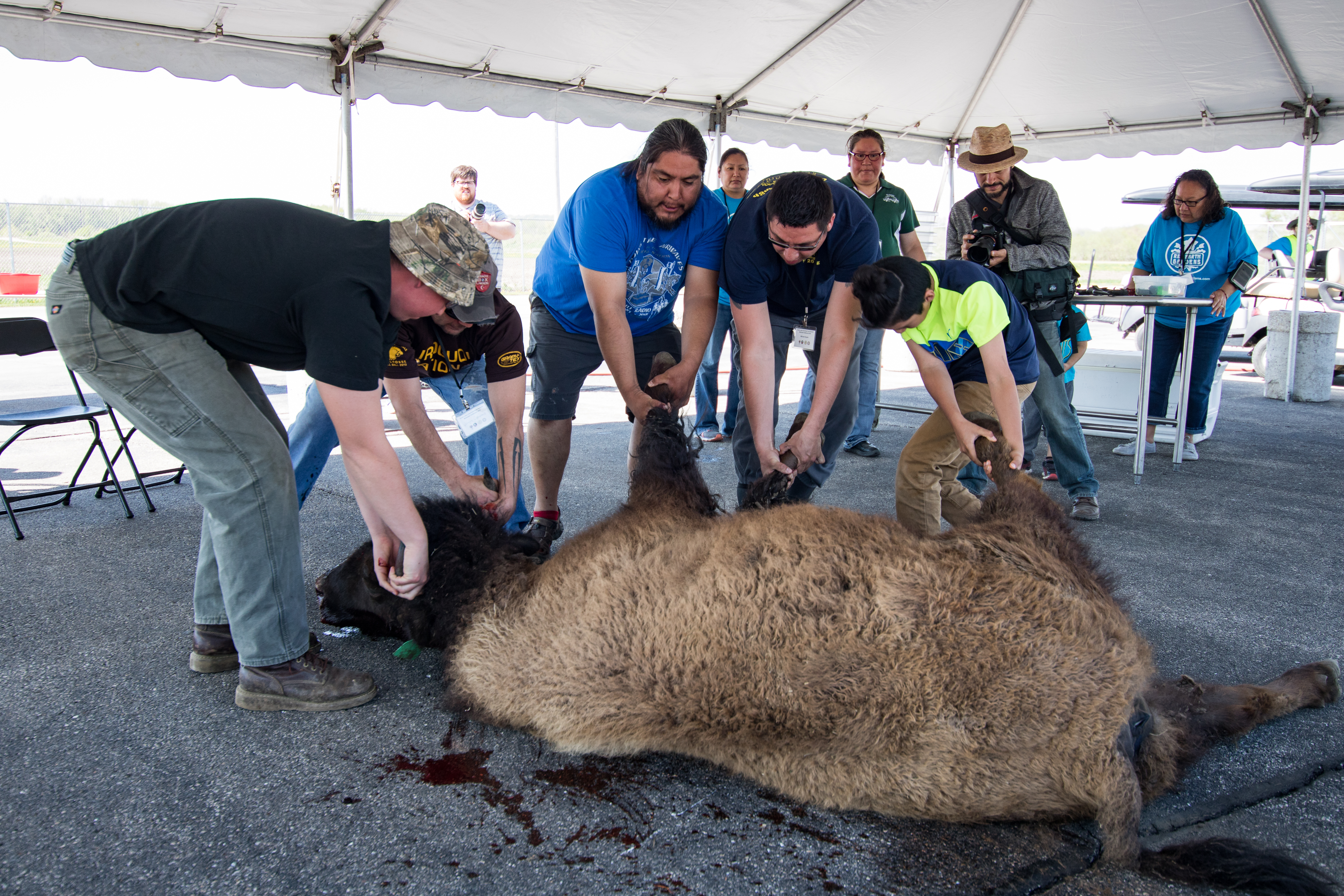 The conference began with a buffalo butchering workshop, with a young female buffalo from Dreesman Buffalo Ranch. Photo by Elizabeth Hoover