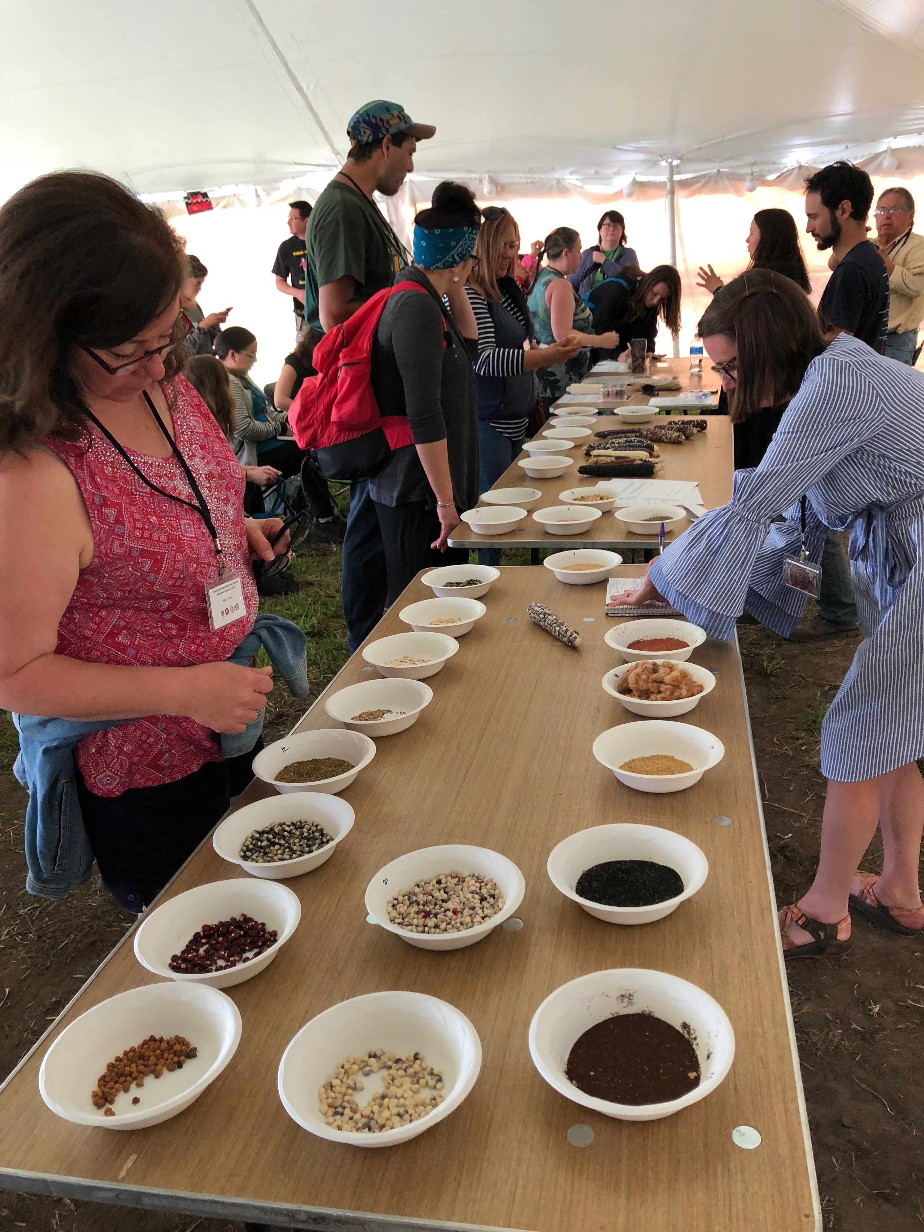 Seed Saving Workshop led by Rowen White and Clayton Brascoupe, who also led a series of discussions around community seed saving and seed rematriation. Photo by Elizabeth Hoover