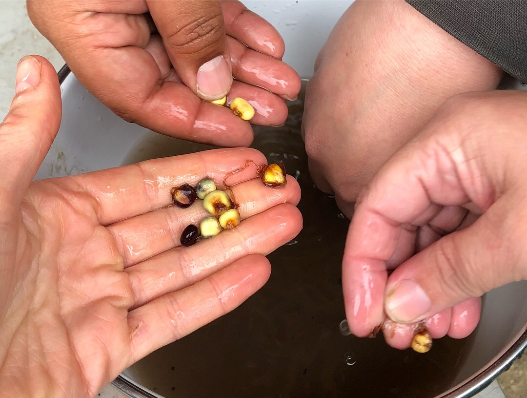 George rinsing the hominy. Photo by Elizabeth Hoover