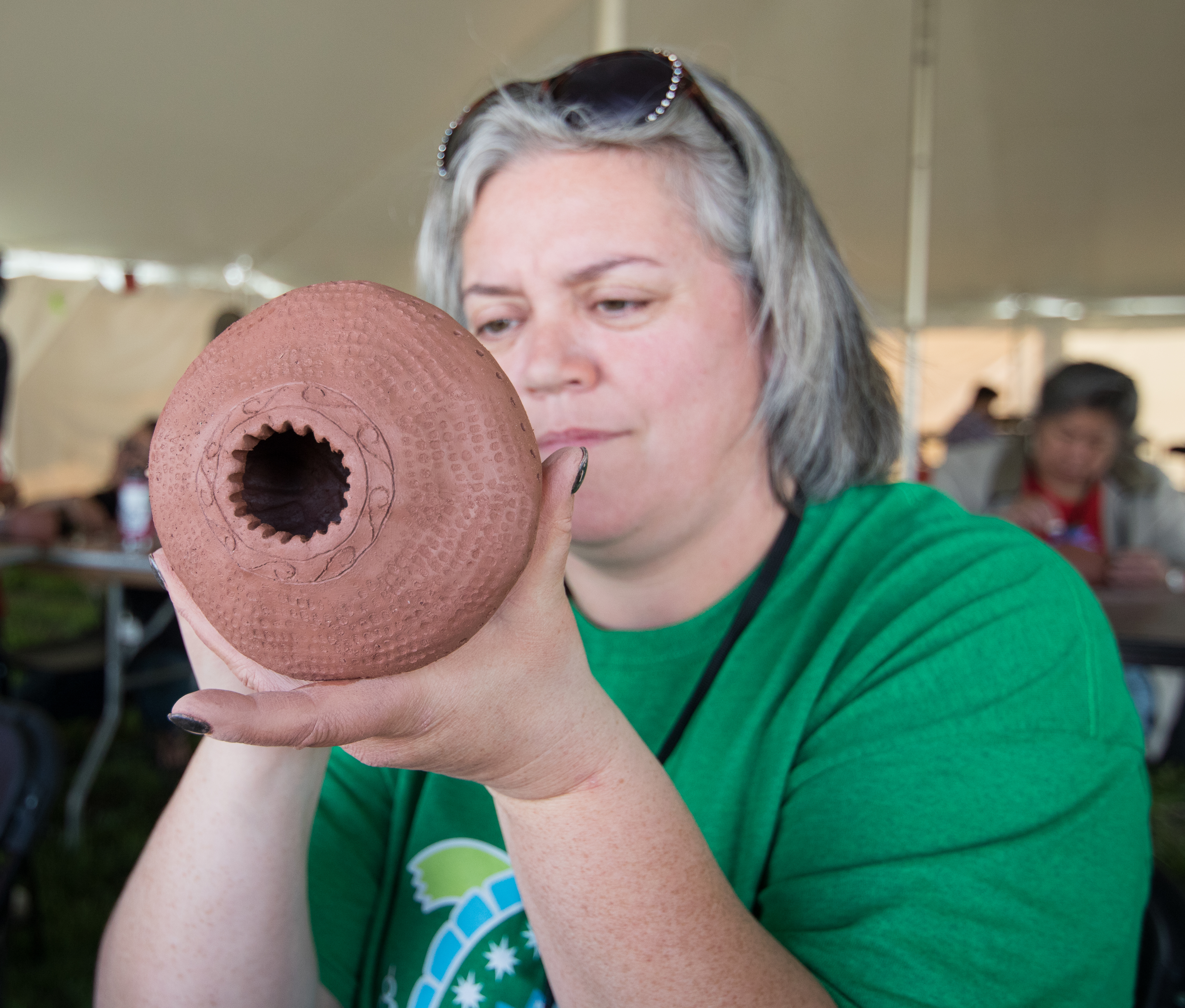 Mohawk potter Tasha Smoke Santiago makes beautiful as well as functional pottery that can be used for cooking over fires. Photo by Elizabeth Hoover