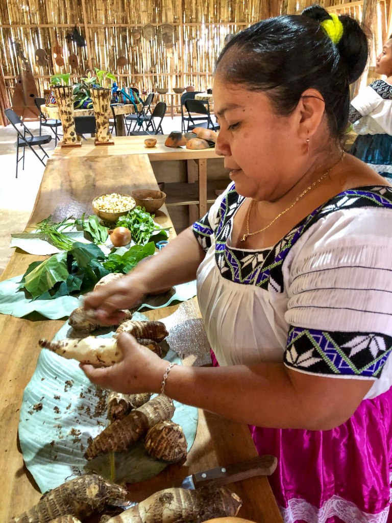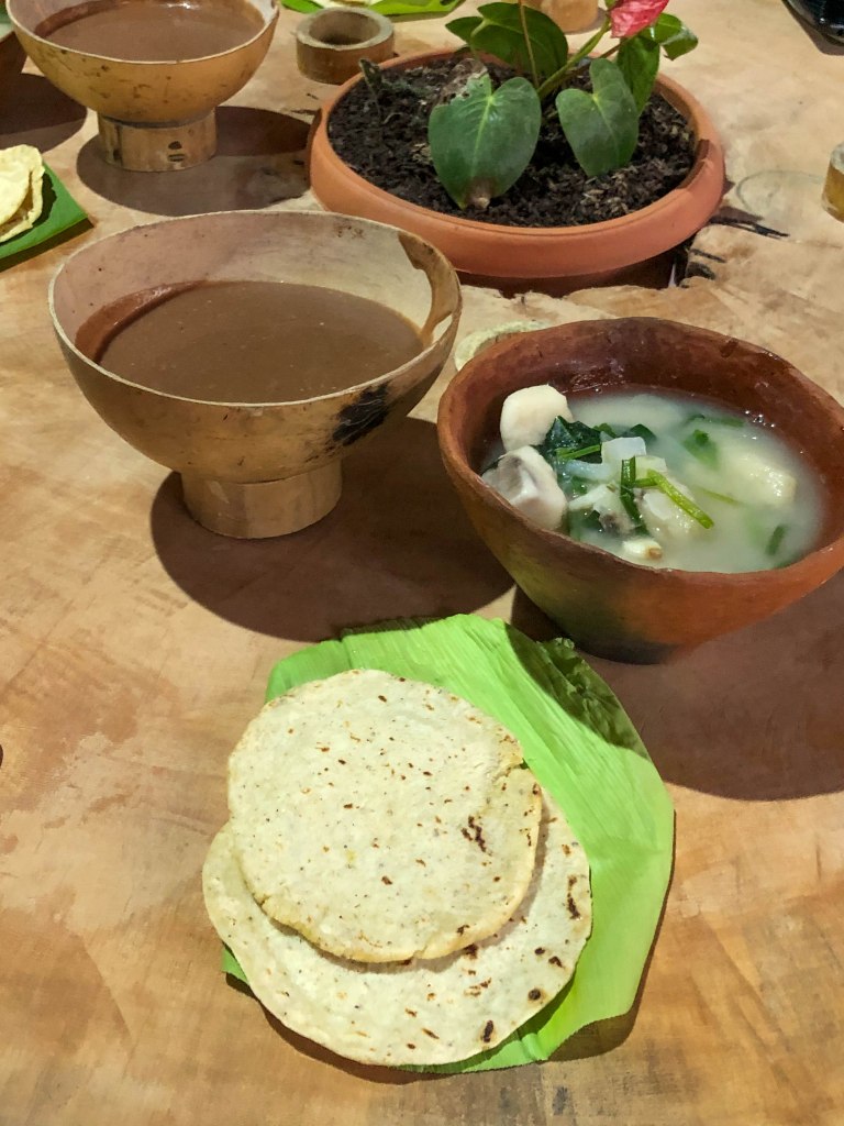 Then Julio’s wife Heliodora and her family dressed us up in Mayan clothes and put us to work making an amazing meal! We made handmade tortillas, a soup with corn, green onions, white onion, coco yam, garlic, cilantro, culantro, mint, habaneros, and chaya leaf, and a chocolate corn drink. It was an amazing time.