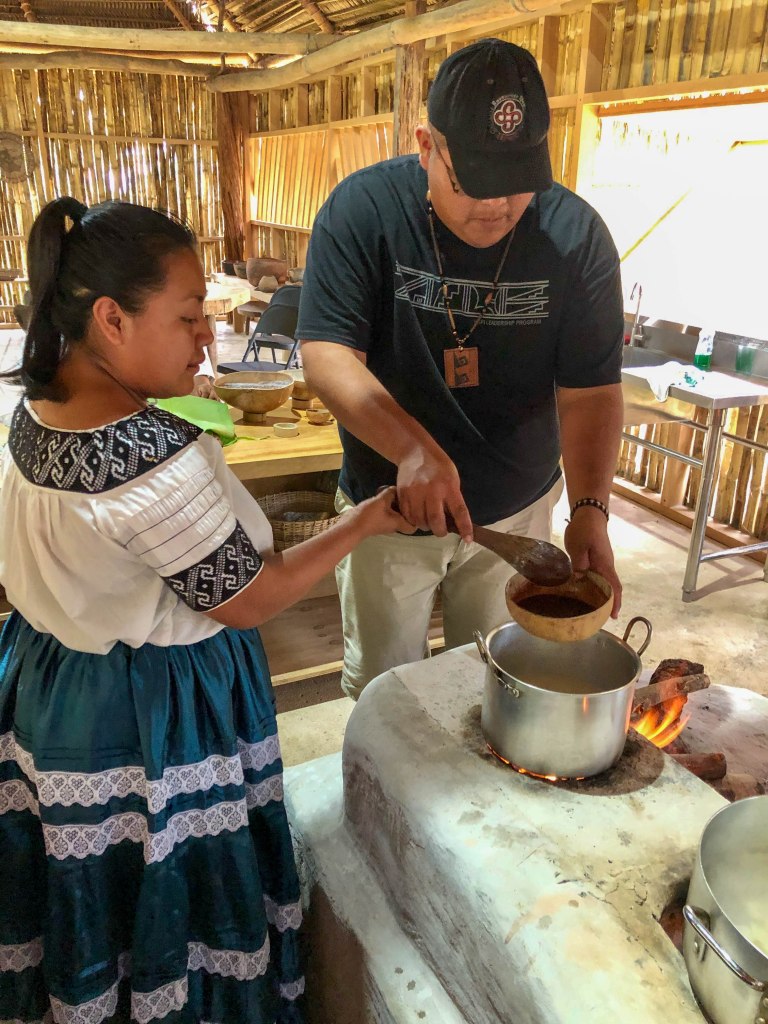 One of the highlights of our trip to Belize for the Indigenous Corn Conference and to visit Mayan farmers across the country, was a day spent at the cacao plantations, chocolate making factory, and kitchen of Julio Saqui of Che’il Mayan Chocolate. I first had the opportunity to meet Julio at the Great Lakes Intertribal Food Summit where he processed cacao for everyone.
