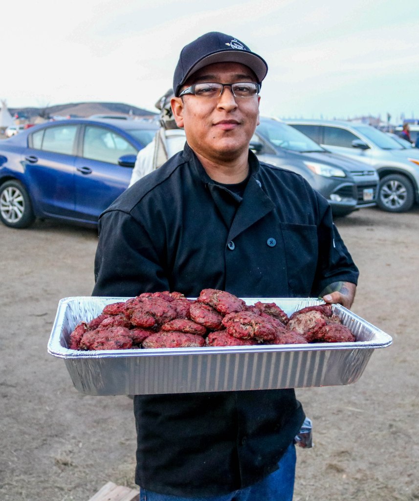 In addition to running his own catering operation, Brian served as a chef at the main kitchen at the Oceti Sakowin camp at Standing Rock in 2016, and he recently reflected on how cooking healthy meals for 2500-4000 people a day helped to prepare him for this work. And similar to his work in the kitchen at Standing Rock, as much as they would like to plan a menu for the week, the daily meals require flexibility and creativity, as surprise donations come in on the daily. Brian and his ad hoc crew have committed to continue providing meals for the elders until they are allowed to return to the Center.[14]